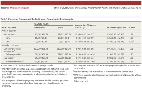 Effect of Levothyroxine on Miscarriage Among Women With Normal Thyroid Function and Thyroid Autoimmunity Undergoing In Vitro Fertilization and Embryo Transfer: A Randomized Clinical Trial