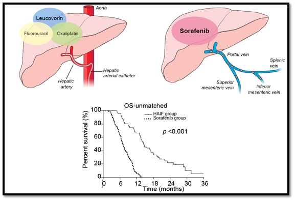 Hepatic arterial infusion of oxaliplatin plus fluorouracil/leucovorin vs. sorafenib for advanced hepatocellular carcinoma.