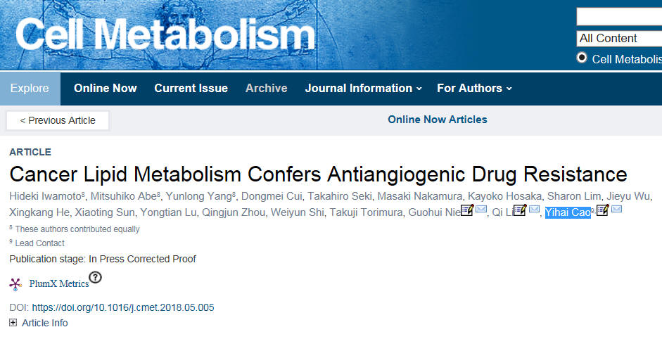瑞典卡罗林斯卡研究所,上海中医药大学,深圳大学附属第一医院的研究人员发表了题为“Cancer lipid metabolism confers antiangi